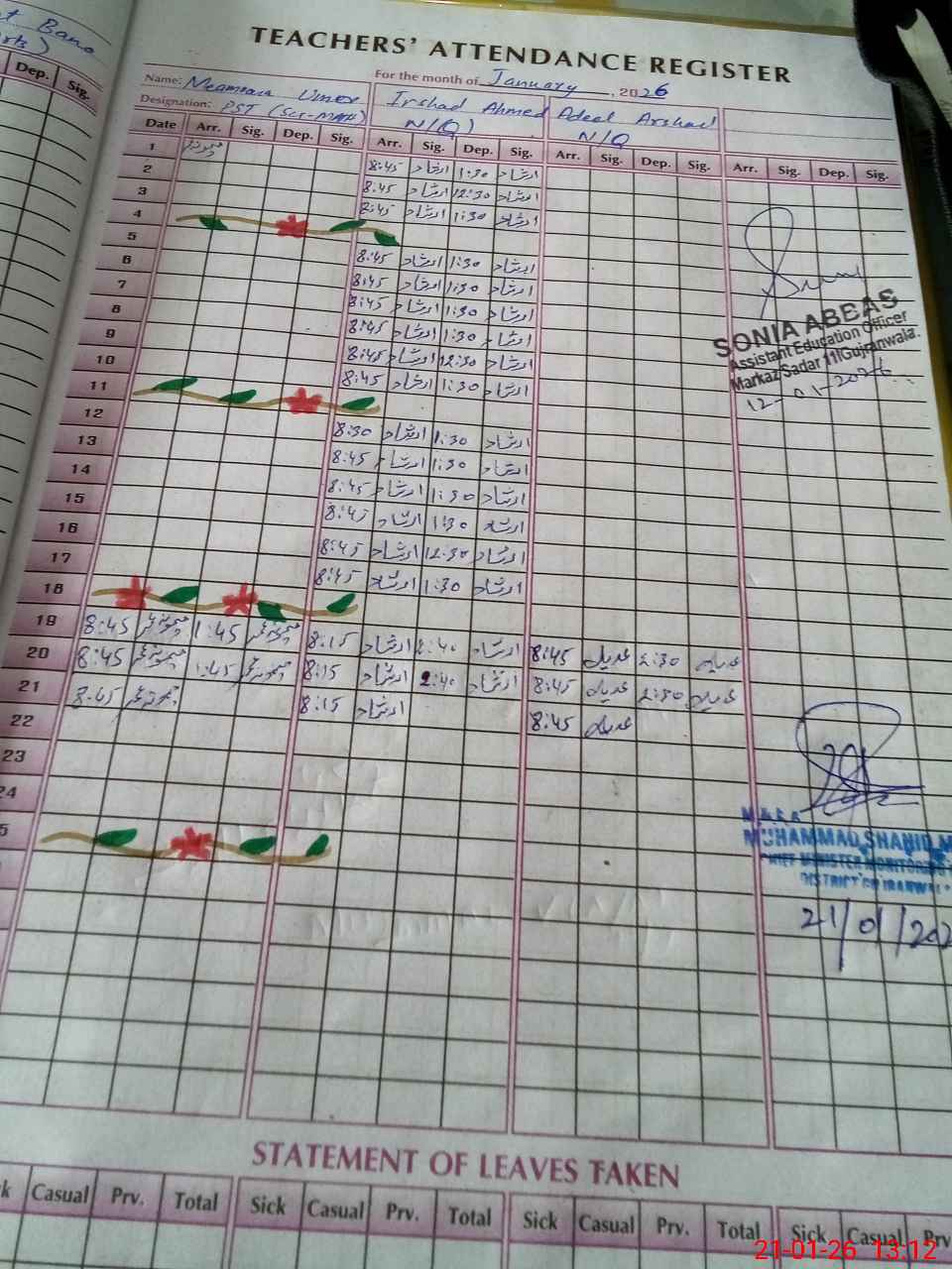 | 37**** | Sa**** Na**** | PST Science/Maths | Regular | 0 | 0 | 0 | 0 | 0 | 0 | 0 | 0 | 0 | Casual |