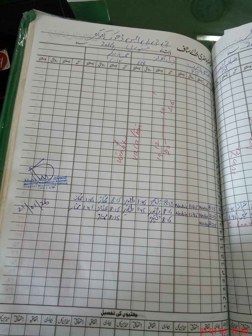 | Monitoring Date: 21-01-2026 | Start Time: 21-01-2026 09:57 AM | End Time: 21-01-2026 10:32 AM | Name of MEA: Na**** Ah**** | |