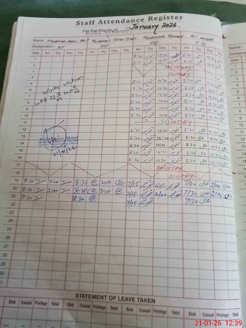 | Monitoring Date: 21-01-2026 | Start Time: 21-01-2026 11:51 AM | End Time: 21-01-2026 12:41 PM | Name of MEA: Na**** Ah**** | |