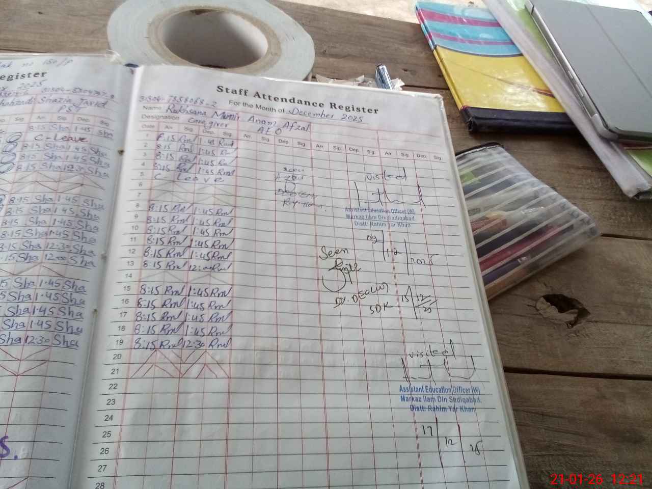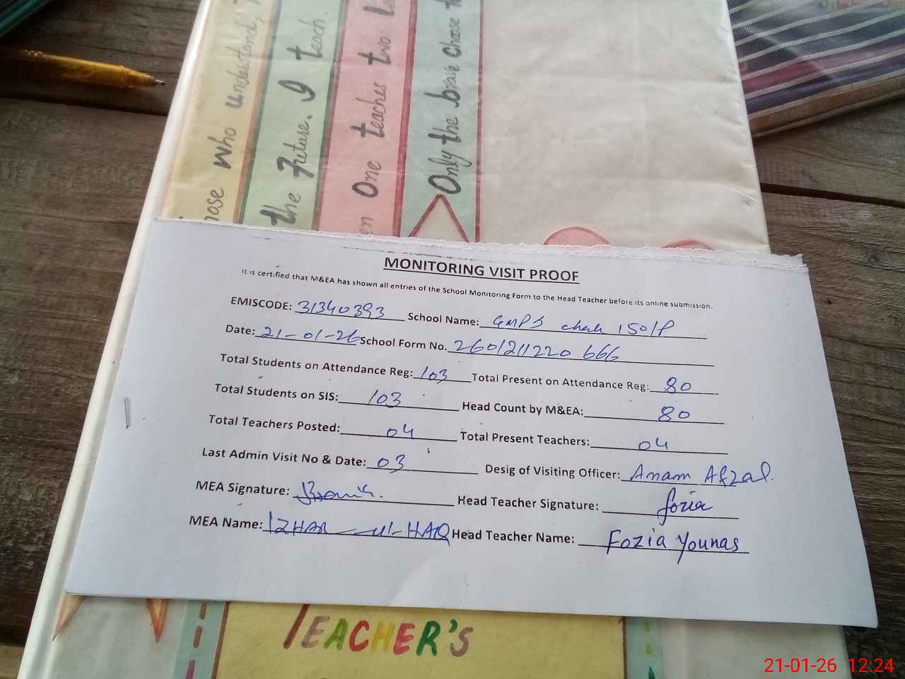 | Attendance Register | Head Teacher | MEA with School | Visit Proof |
