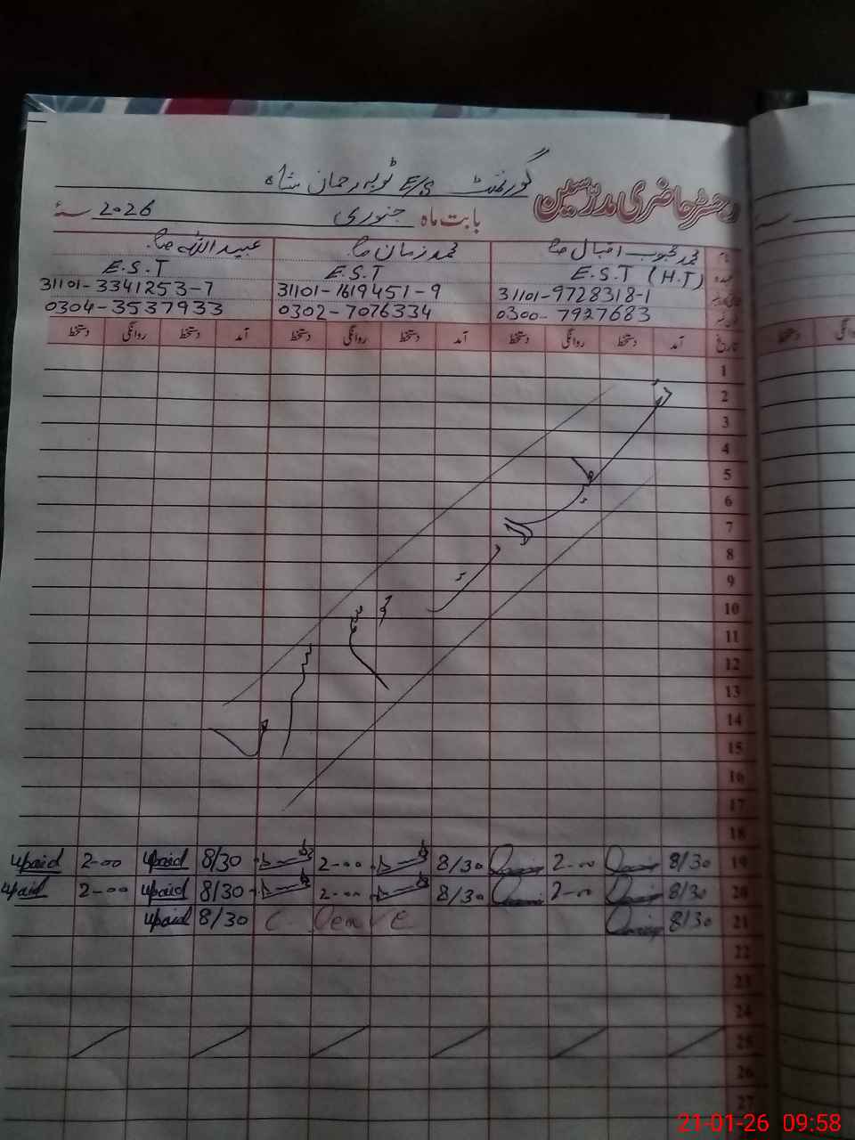 | 31**** | Mu**** Za**** | EST Oriental | Regular | 2 | 0 | 0 | 0 | 0 | 0 | 0 | 0 | 2 | Casual |