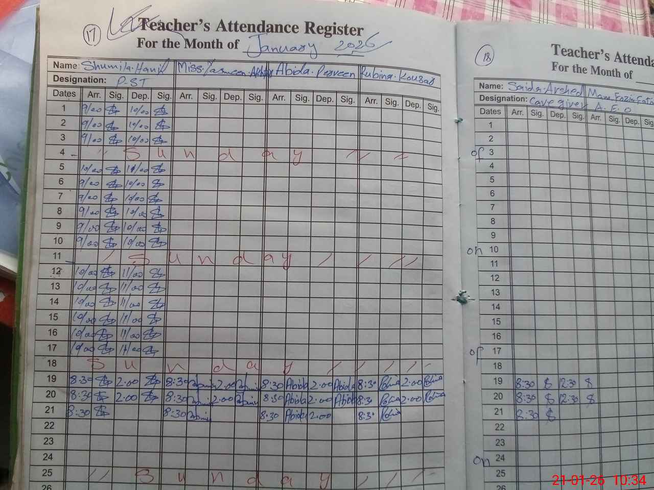 | Monitoring Date: 21-01-2026 | Start Time: 21-01-2026 10:08 AM | End Time: 21-01-2026 10:43 AM | Name of MEA: Za**** Ah**** | |