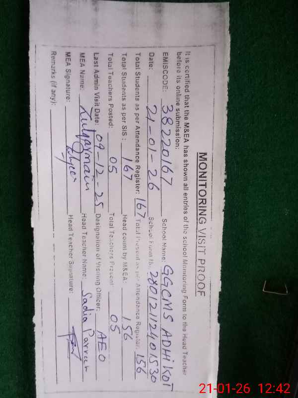 | EMIS Code: 38220167 | Name of School: GGCMS ADHIKOT | |||
