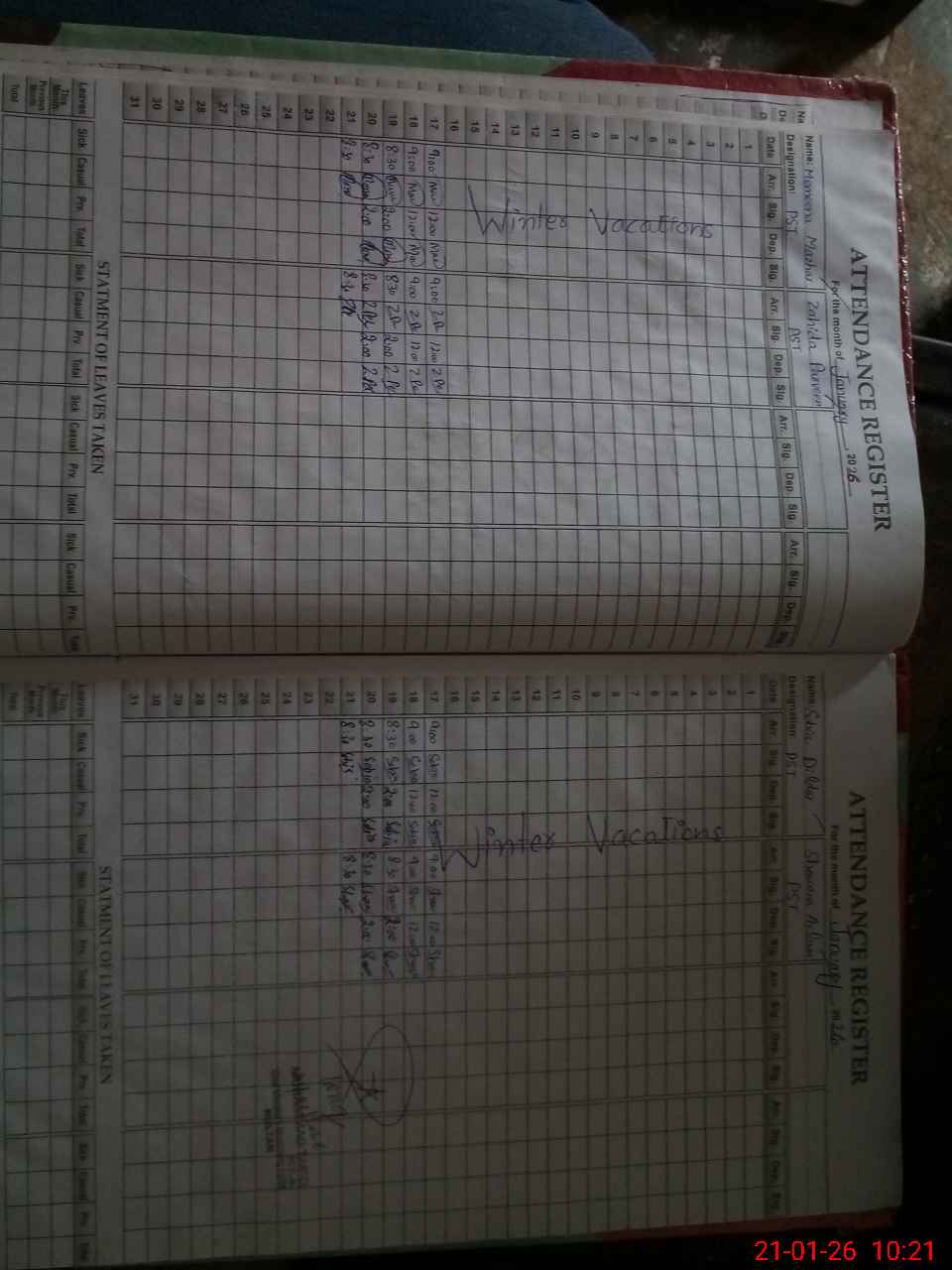 | Leave | Duty | Absent | Maternity | Medical | Ex- Pak |