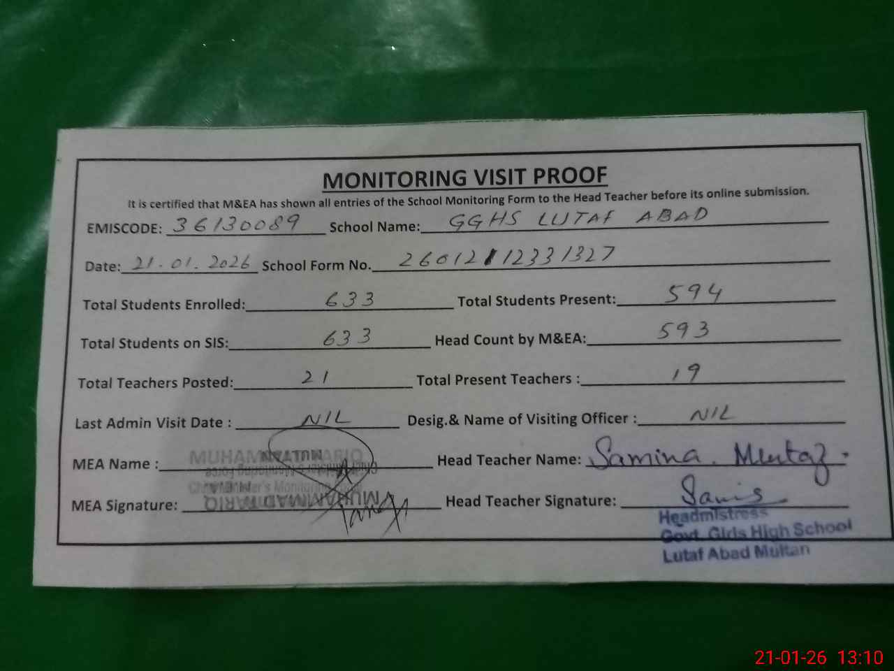| EMIS Code: 36130089 | Name of School: GGHS LUTAF ABAD | |||