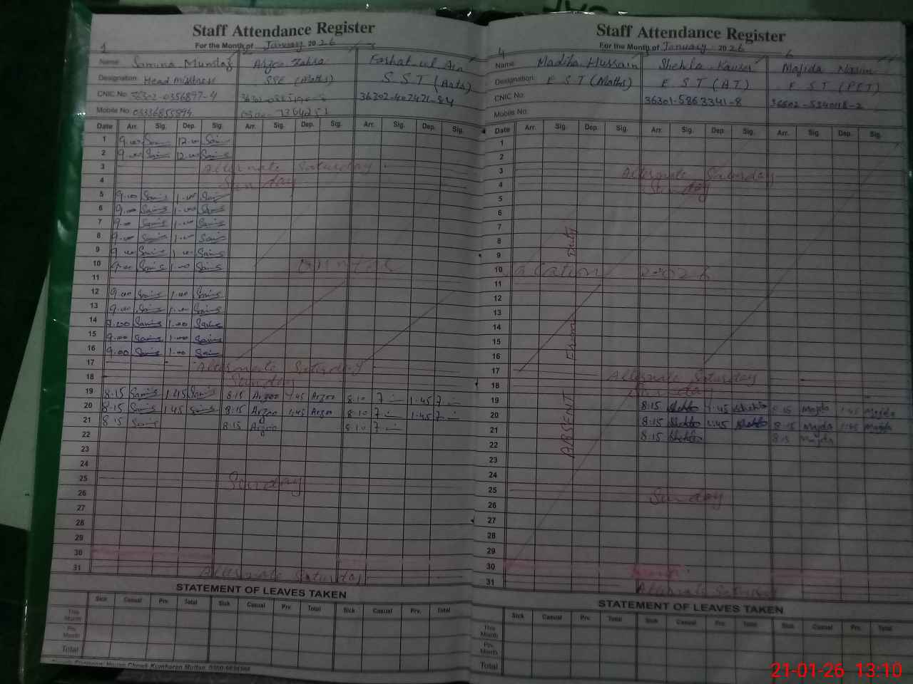 | 32**** | Sa**** Qa**** | PST Arts | Regular | 31 | 0 | 0 | 31 | 0 | 0 | 0 | 0 | 0 | Absent (Un-Authorized) |