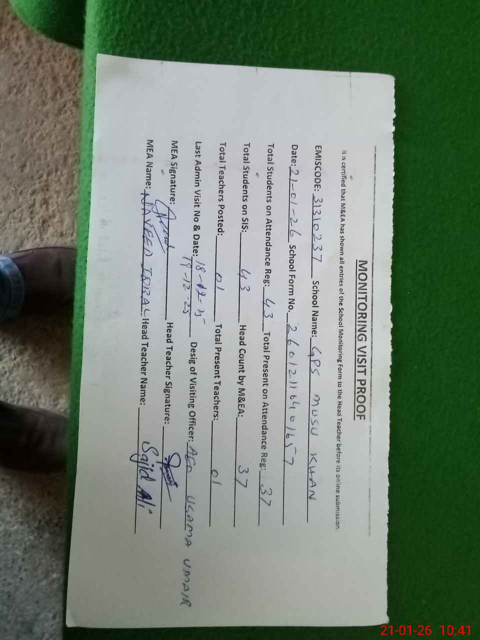 | EMIS Code: 31310237 | Name of School: GPS MUSU KHAN | |||
