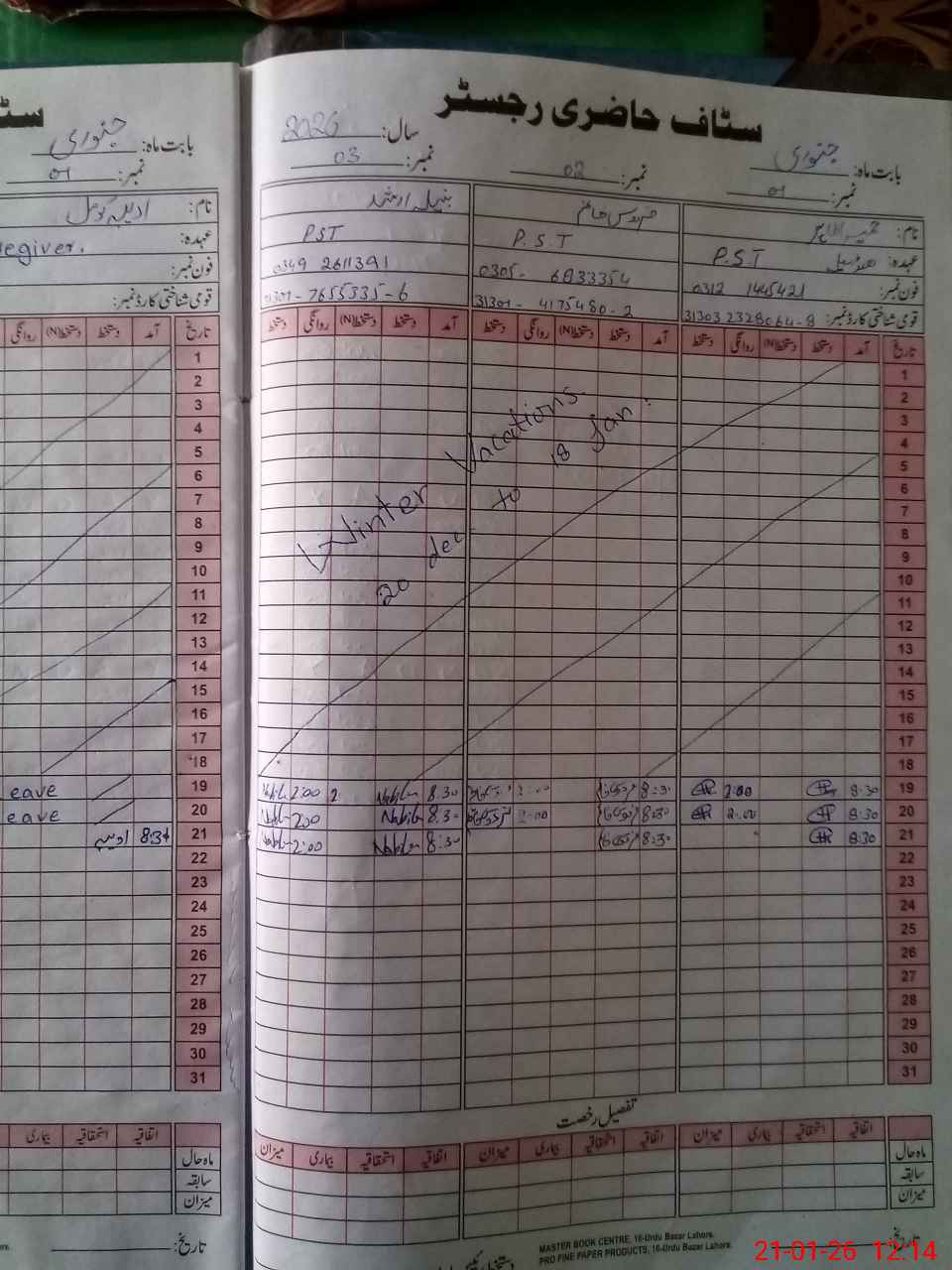 | CNIC | Full Name | Designation | R/C | Absence During Last Calender Month |
