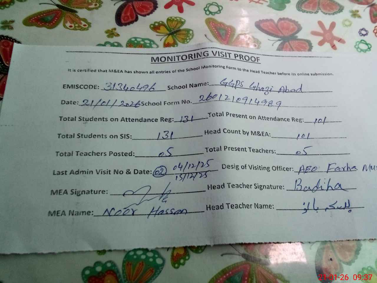 | EMIS Code: 31340496 | Name of School: GGPS GHAZI ABAD KOOCHA MEHNDI KHAN OLD | |||