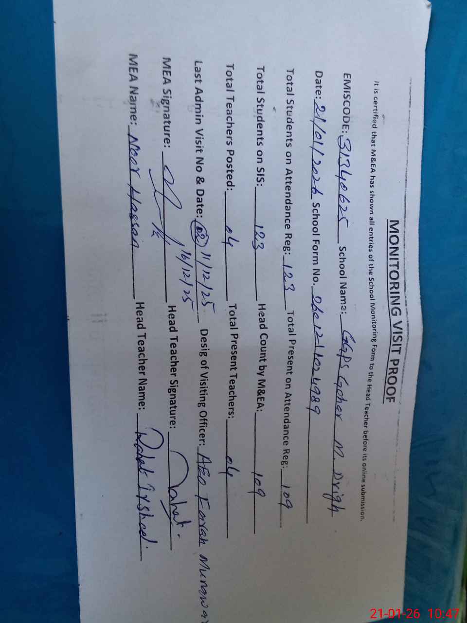 | EMIS Code: 31340625 | Name of School: GGPS GOHAR MUHAMMAD DRGH | |||