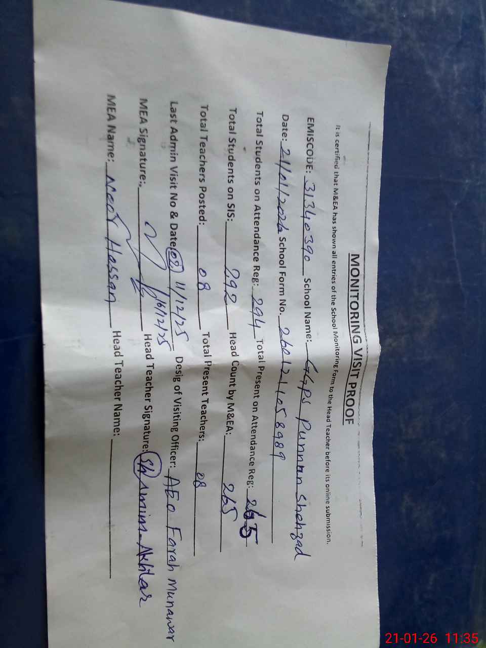 | EMIS Code: 31340390 | Name of School: GGPS BASTI PUNNUN SHAHZAD | |||