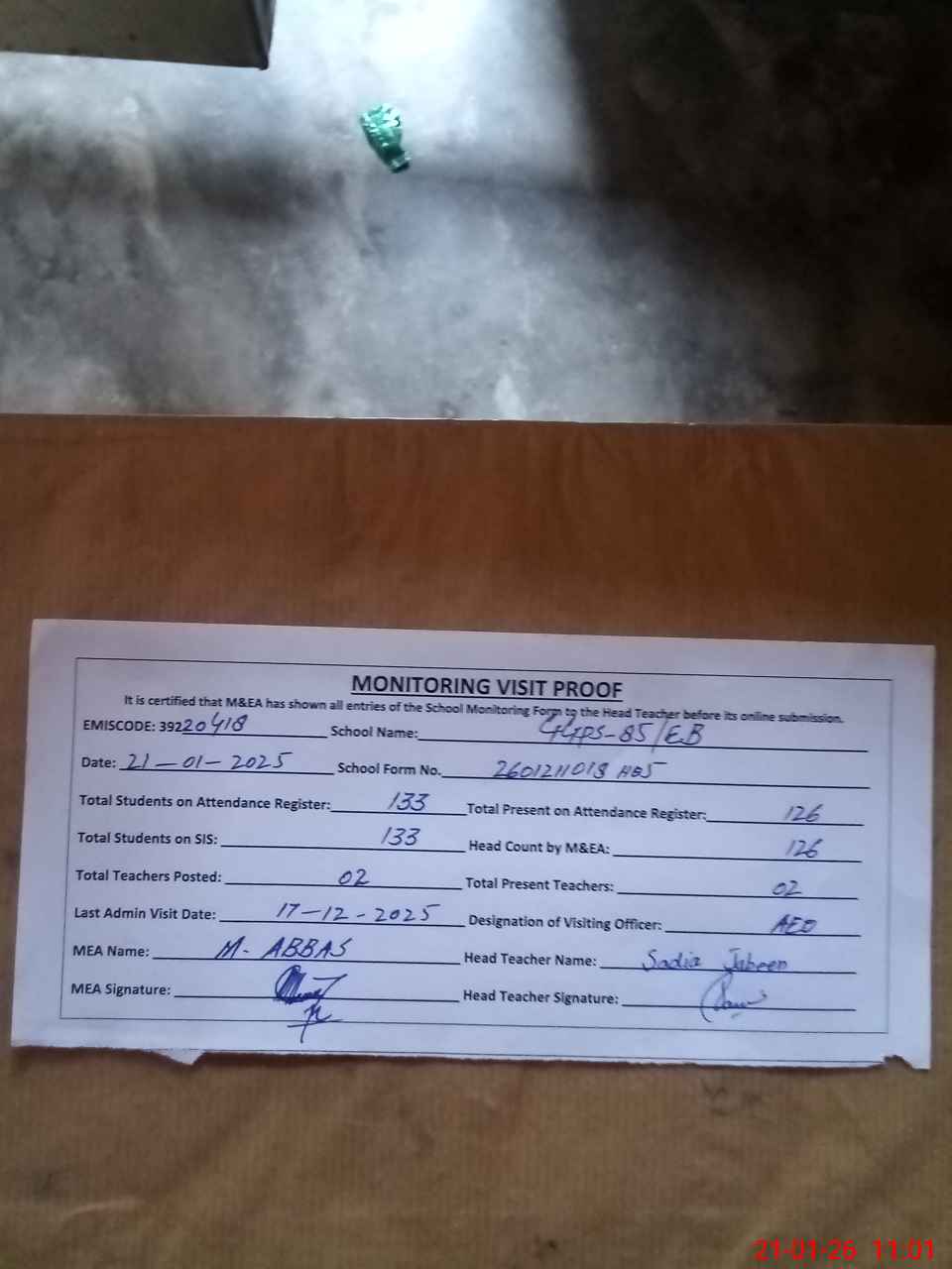 | EMIS Code: 39220418 | Name of School: GGPS 85 EB POST OFFICE QABOOLA | |||