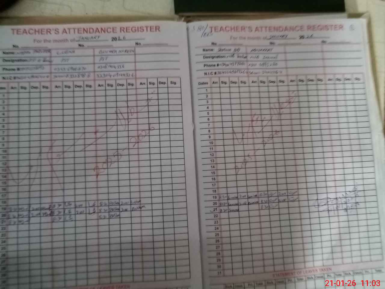 | Name: NA**** PE**** Designation: (School Headmaster's/Headmistress's) PST Phone/Cell Number: 03**** |