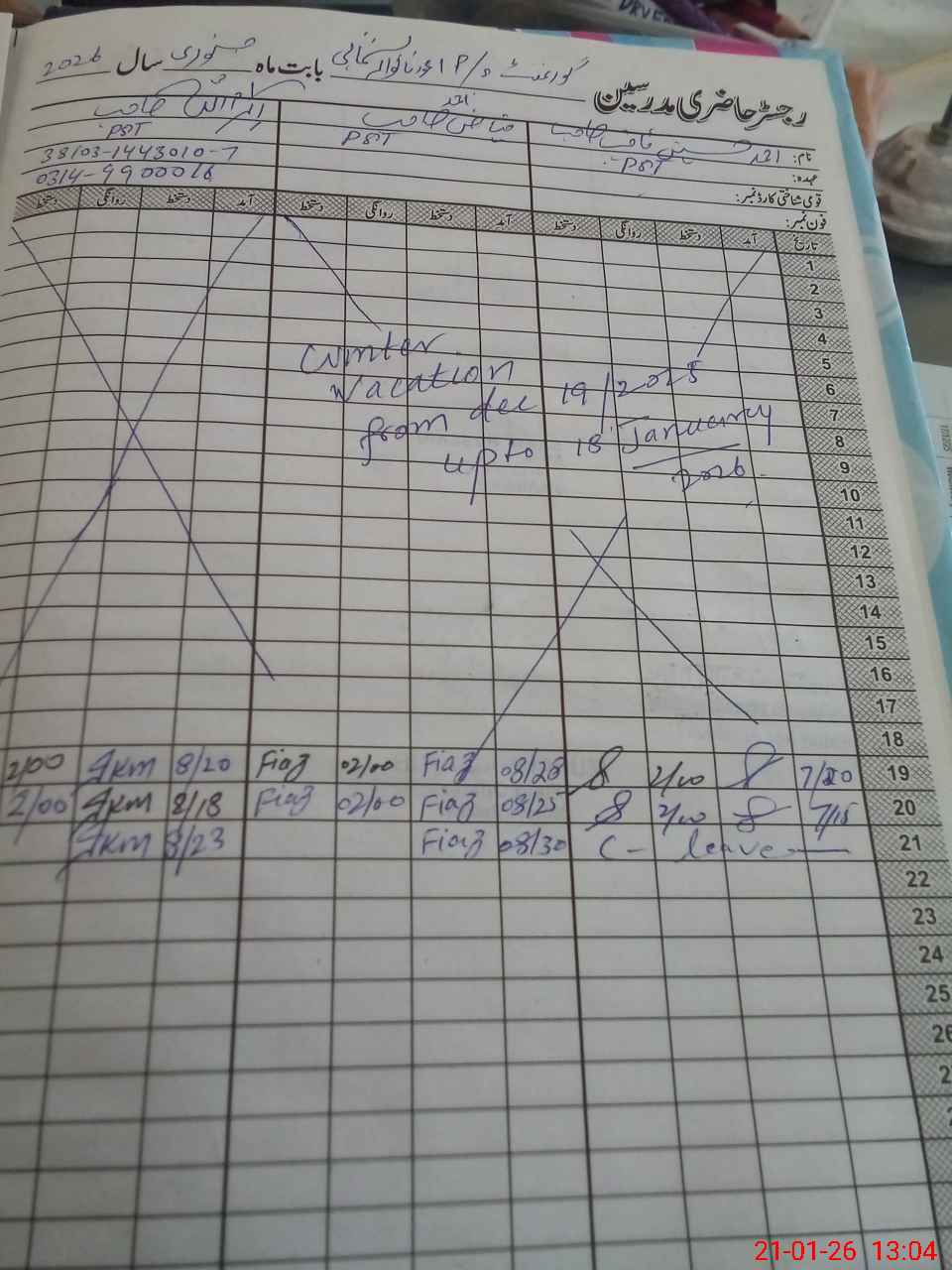 | Name: Ah**** Hu**** Sa**** Designation: (School Headmaster's/Headmistress's) PTC/JV Phone/Cell Number: 03**** |