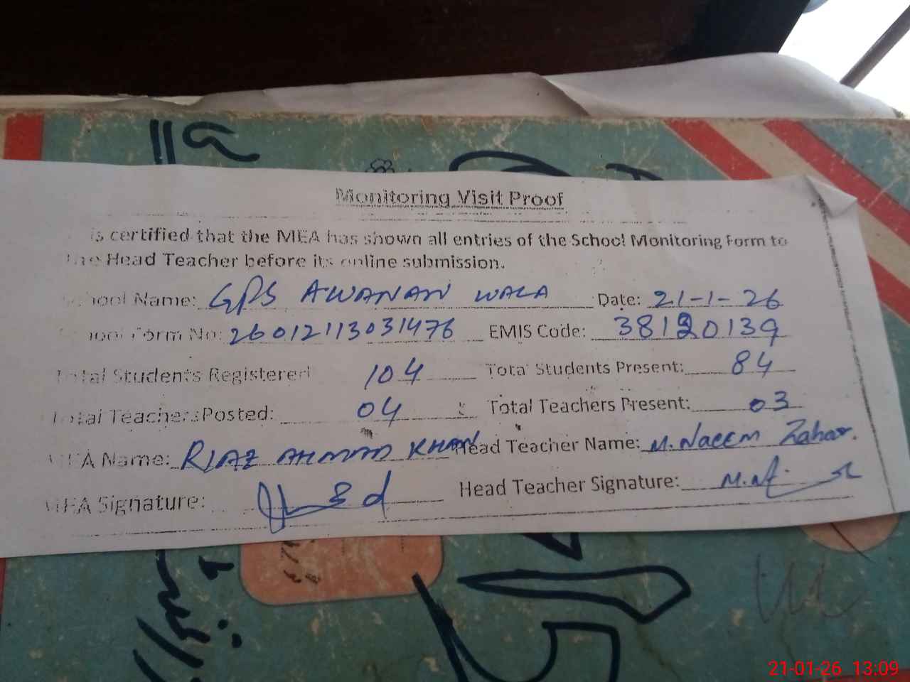 | EMIS Code: 38120139 | Name of School: GPS AWANAN WALA SHUMALI | |||