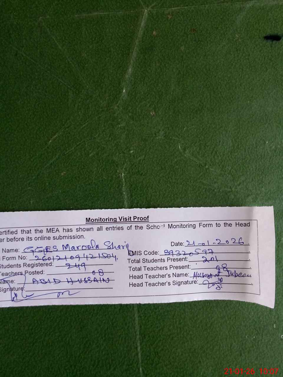 | EMIS Code: 39320597 | Name of School: GGES MAROOLA SHARIF | |||