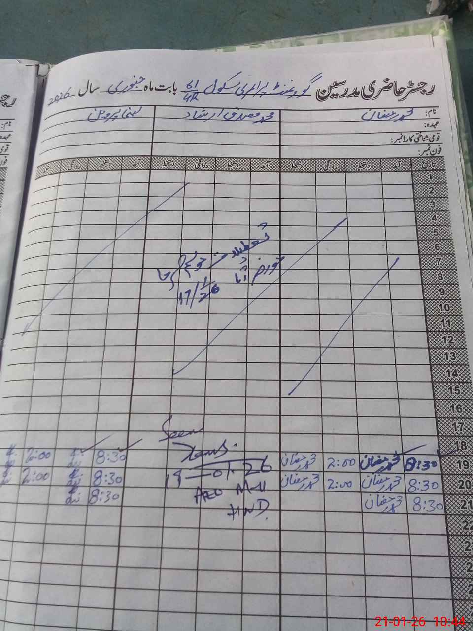 | 31**** | Mu**** Mu**** Ir**** | ESE (Arts) | Contract | 0 | 0 | 0 | 0 | 0 | 0 | 0 | 0 | 0 | Absent (Un-Authorized) |