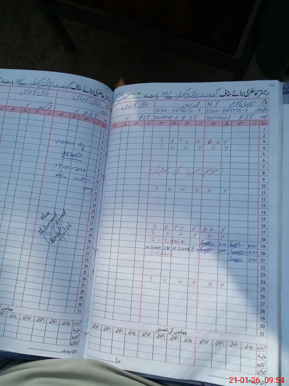 | CNIC | Full Name | Designation | R/C | Absence During Last Calender Month |