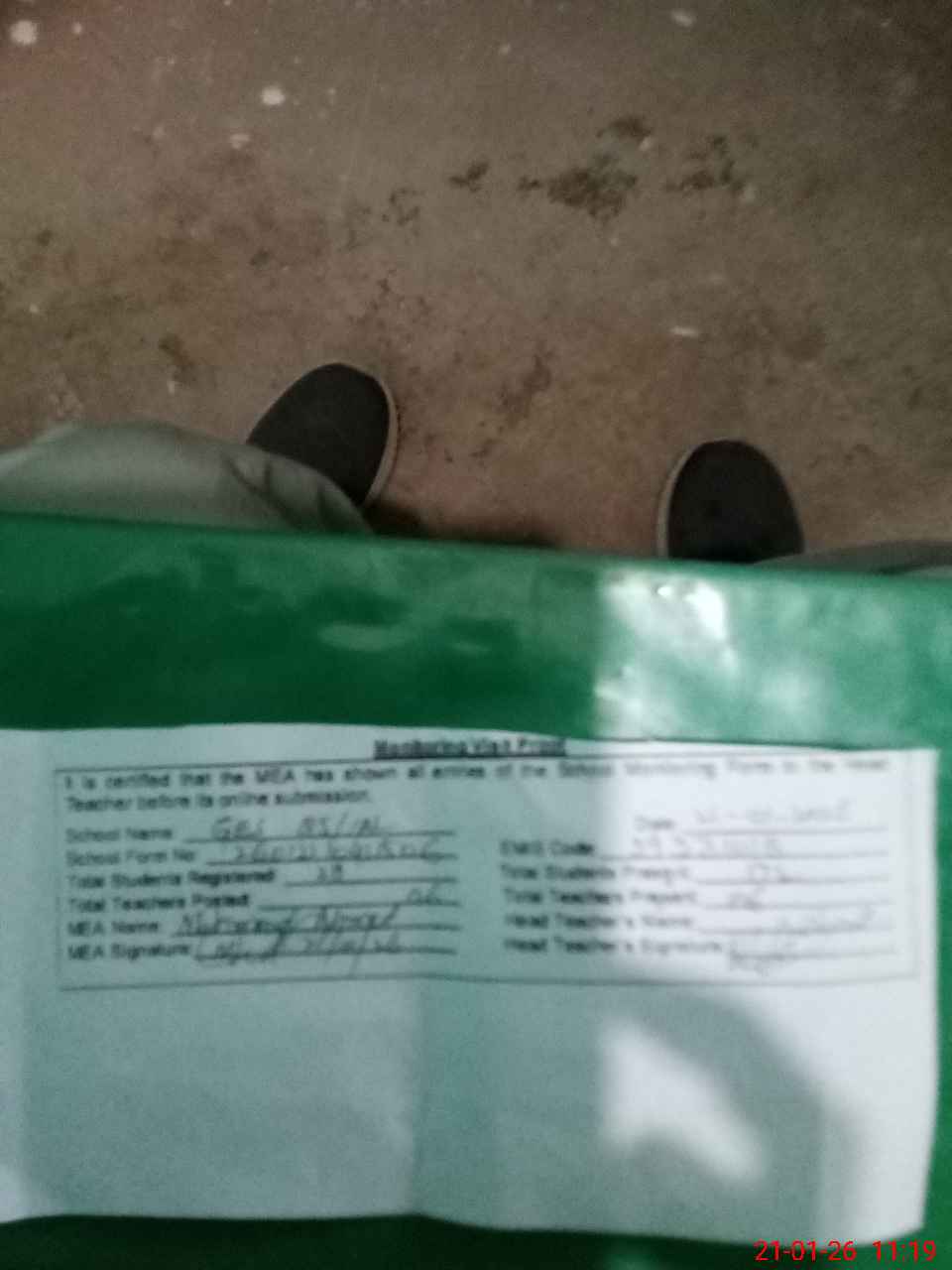 | Attendance Register | Head Teacher | MEA with School | Visit Proof |
