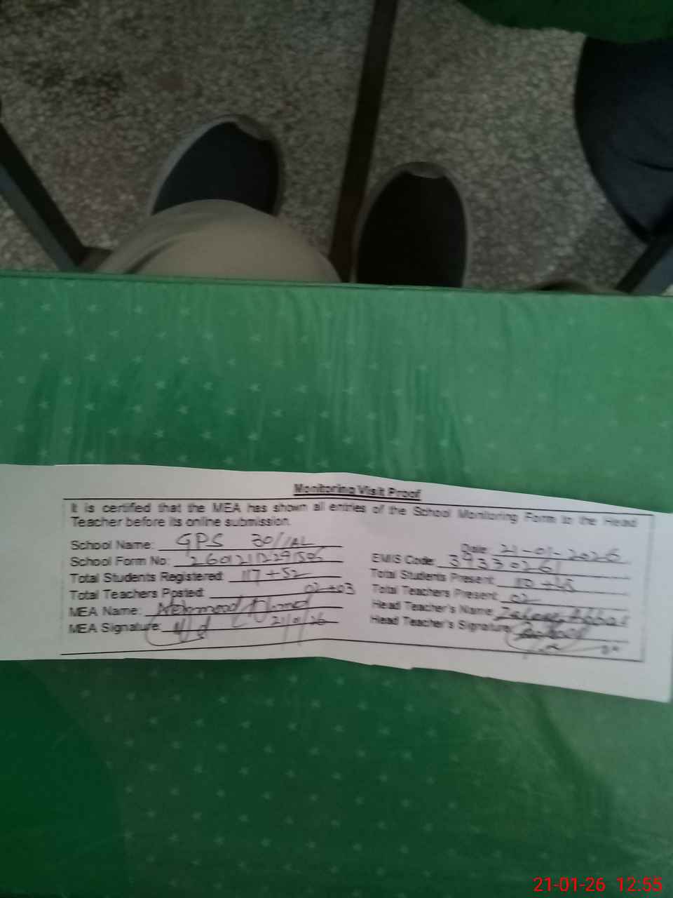 | EMIS Code: 39330261 | Name of School: GPS CHAK NO 30/1.AL | |||