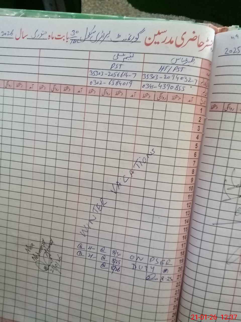 | Name: Za**** Ab**** Designation: (School Headmaster's/Headmistress's) PST Phone/Cell Number: 03**** |