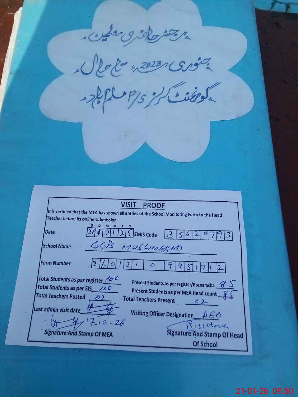 | EMIS Code: 35620793 | Name of School: GGPS MUSLIM ABAD | |||