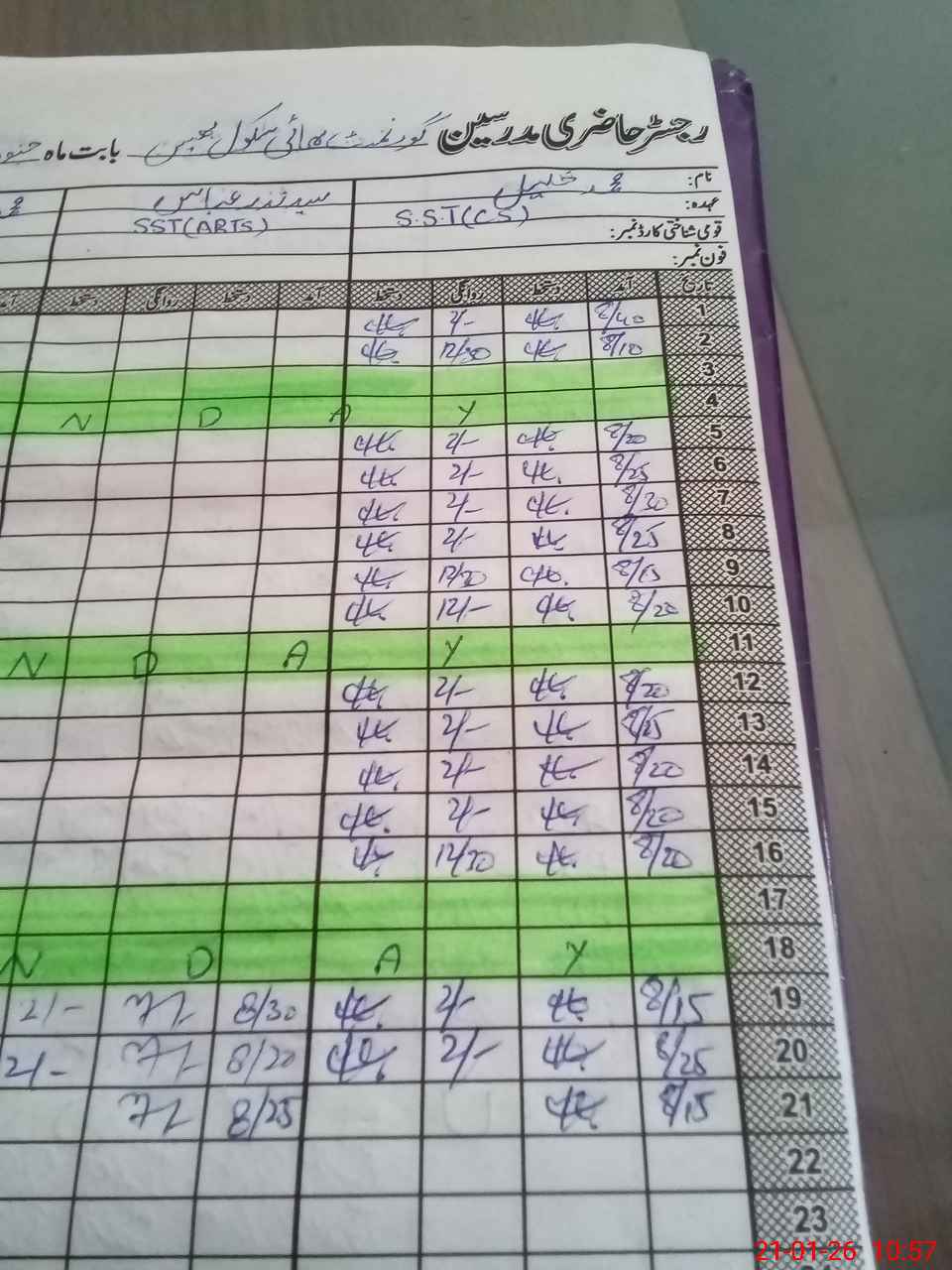 | CNIC | Full Name | Designation | R/C | Absence During Last Calender Month |
