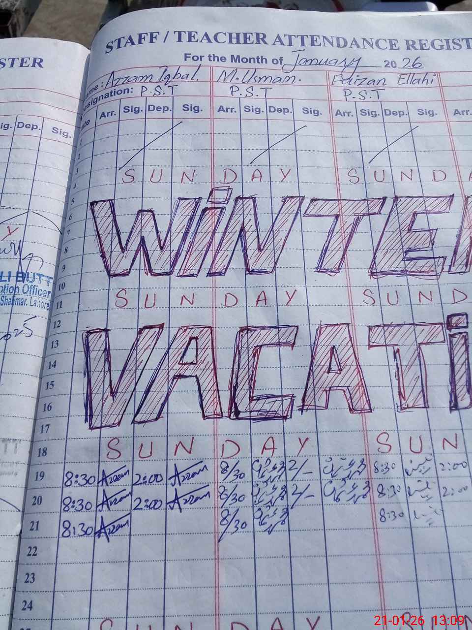 | CNIC | Full Name | Designation | R/C | Absence During Last Calender Month |