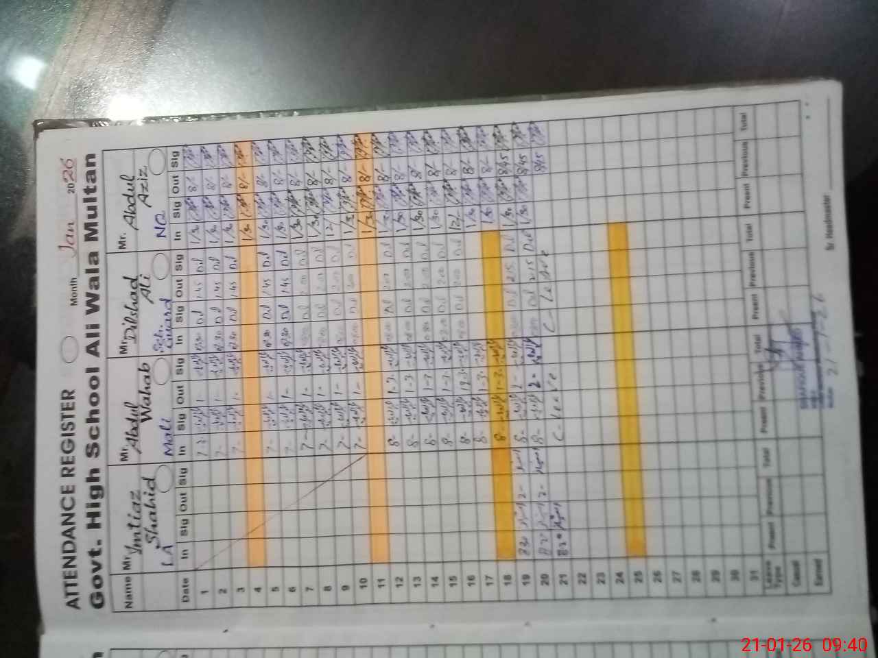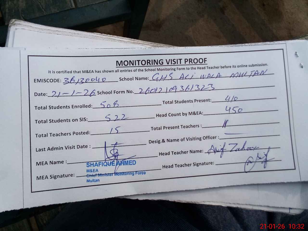 | EMIS Code: 36130040 | Name of School: GHS ALI WALA MULTAN | |||