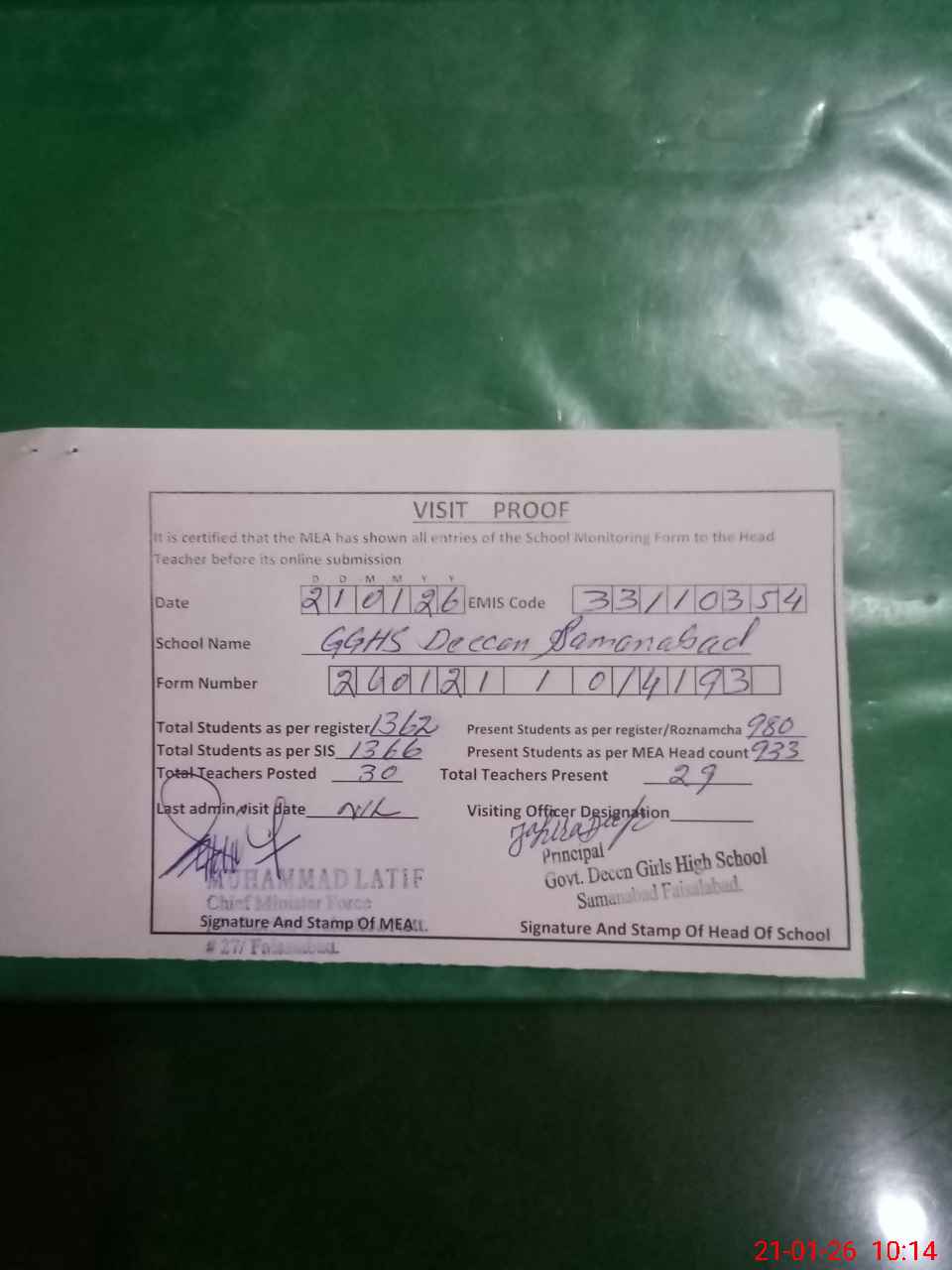 | EMIS Code: 33110354 | Name of School: GGHS DECCAN SAMANABAD FSD | |||