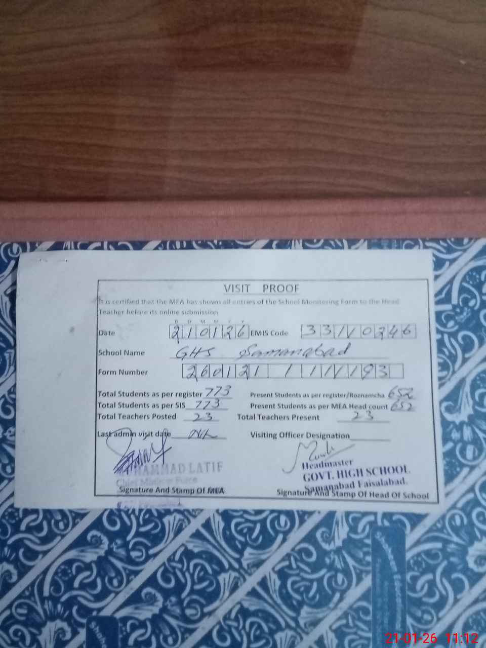 | EMIS Code: 33110246 | Name of School: GHS SAMANABAD | |||