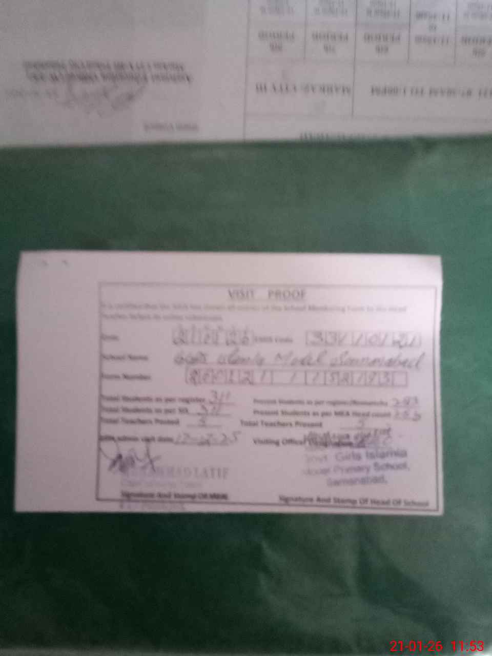 | Attendance Register | Head Teacher | MEA with School | Visit Proof |