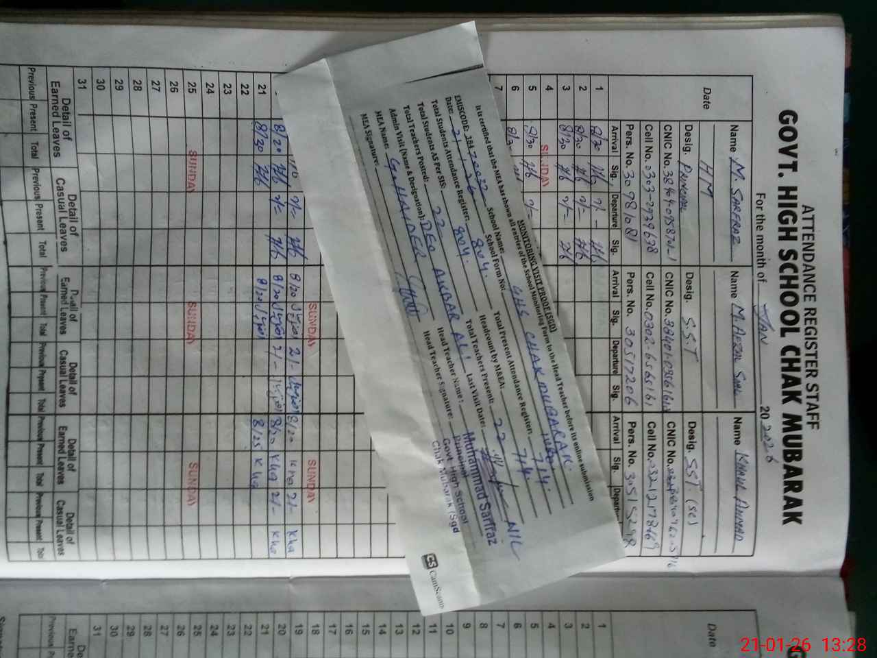| Name: MU**** SA**** Designation: (School Headmaster's/Headmistress's) Sr .HEADMASTER Phone/Cell Number: 03**** |