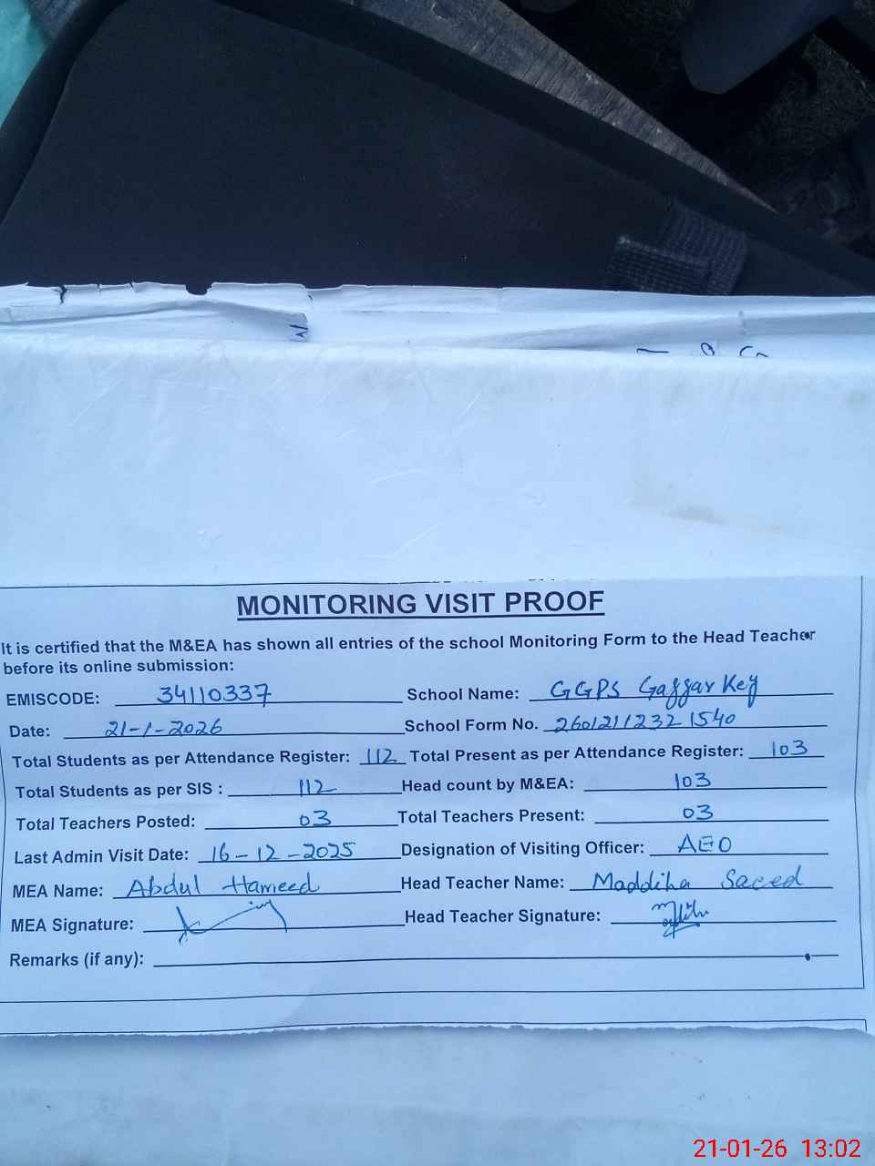 | EMIS Code: 34110337 | Name of School: GGPS GAGGAR KEY | |||