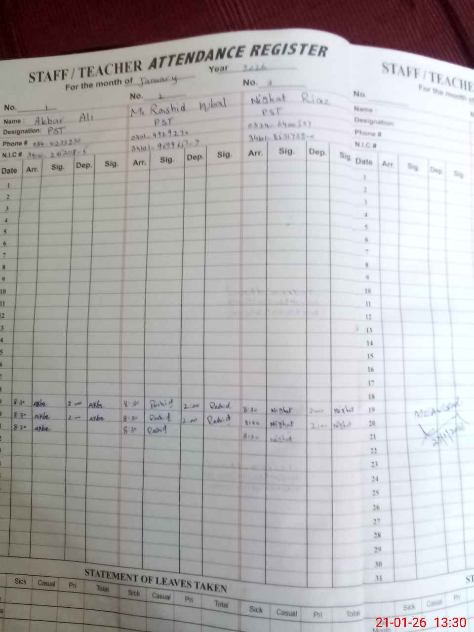 | Name: AK**** AL**** Designation: (School Headmaster's/Headmistress's) PST Phone/Cell Number: 03**** |