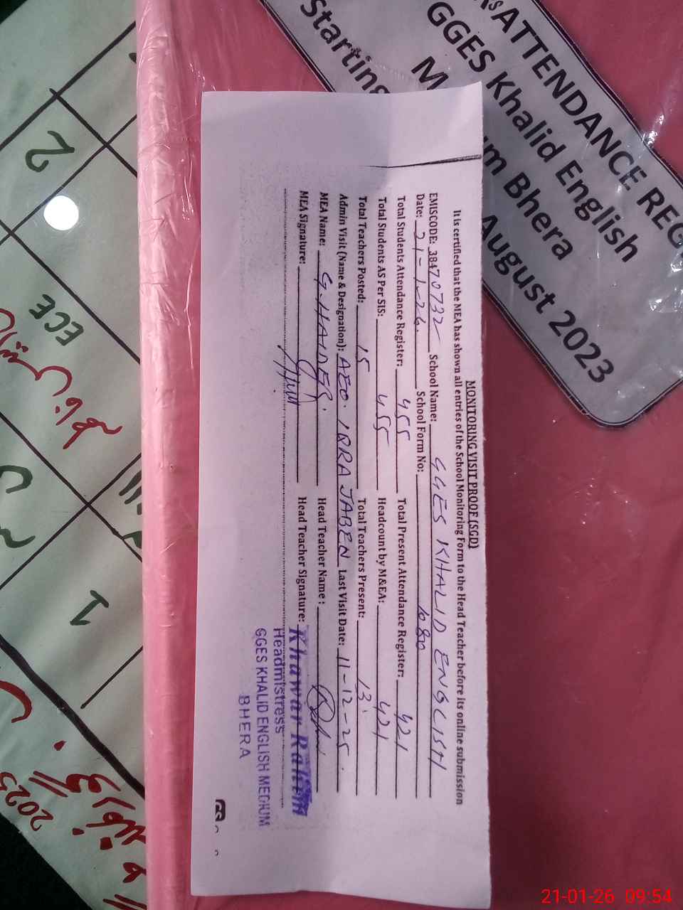 | EMIS Code: 38470732 | Name of School: GGES KHALID ENGLISH MEDIUM BHERA | |||