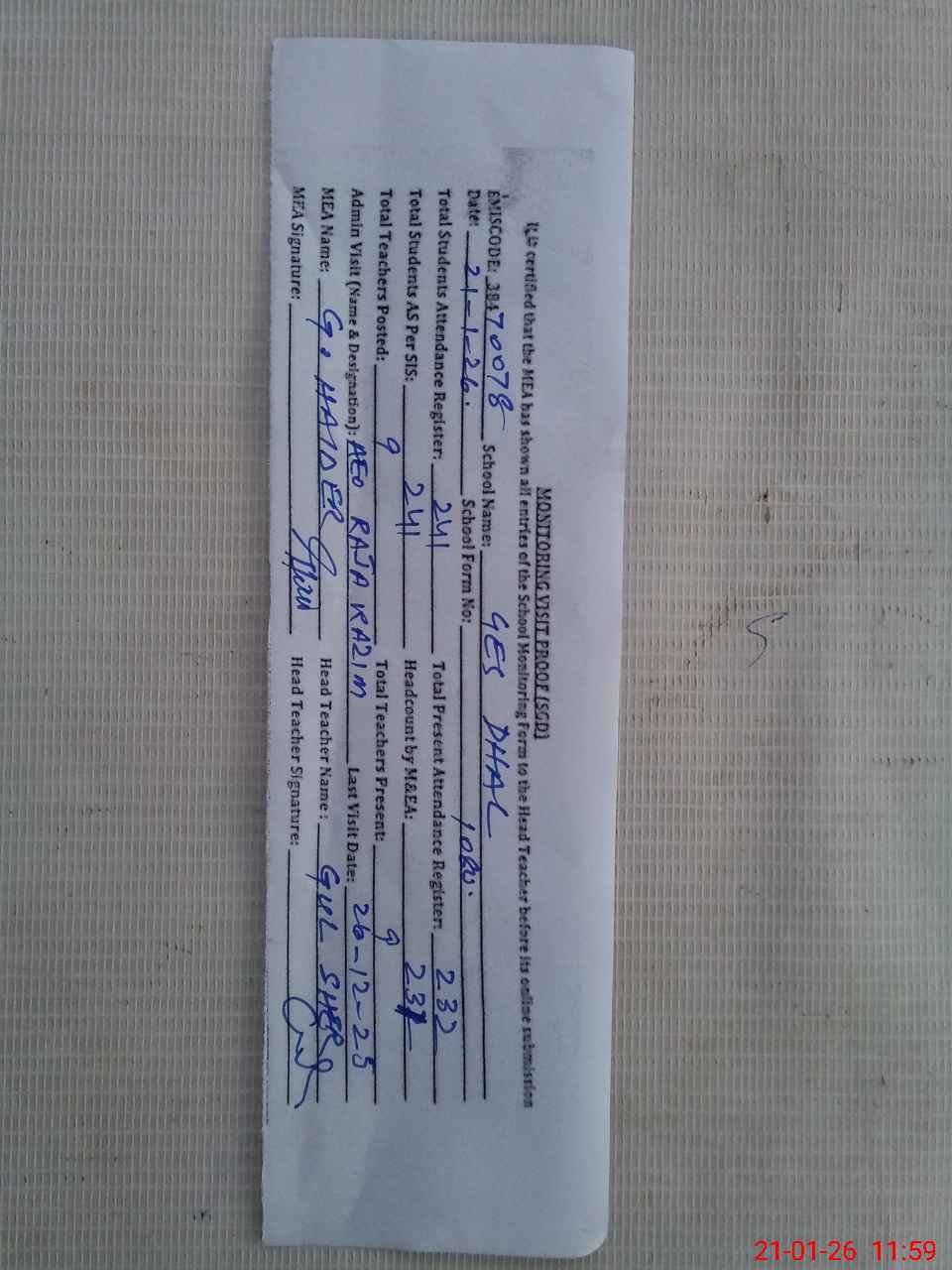 | EMIS Code: 38470078 | Name of School: GES DHAL | |||