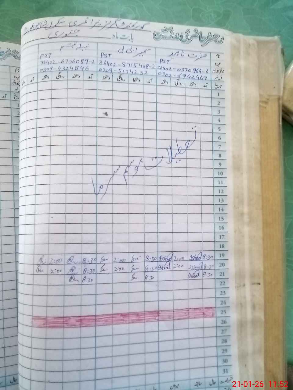 | Name: Is**** Na**** Designation: (School Headmaster's/Headmistress's) PST Phone/Cell Number: 03**** |