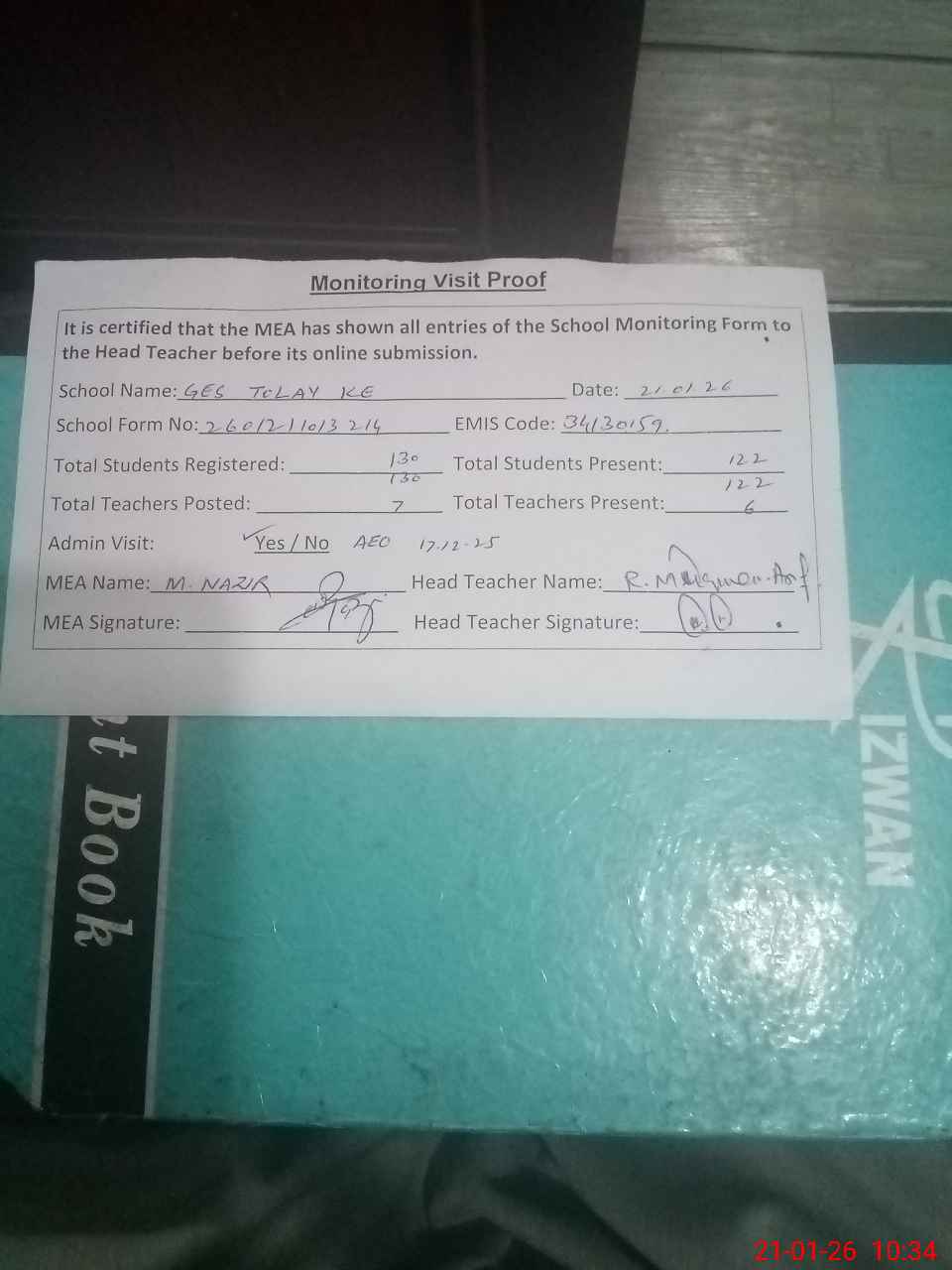 | EMIS Code: 34130159 | Name of School: GES TOLEKE | |||