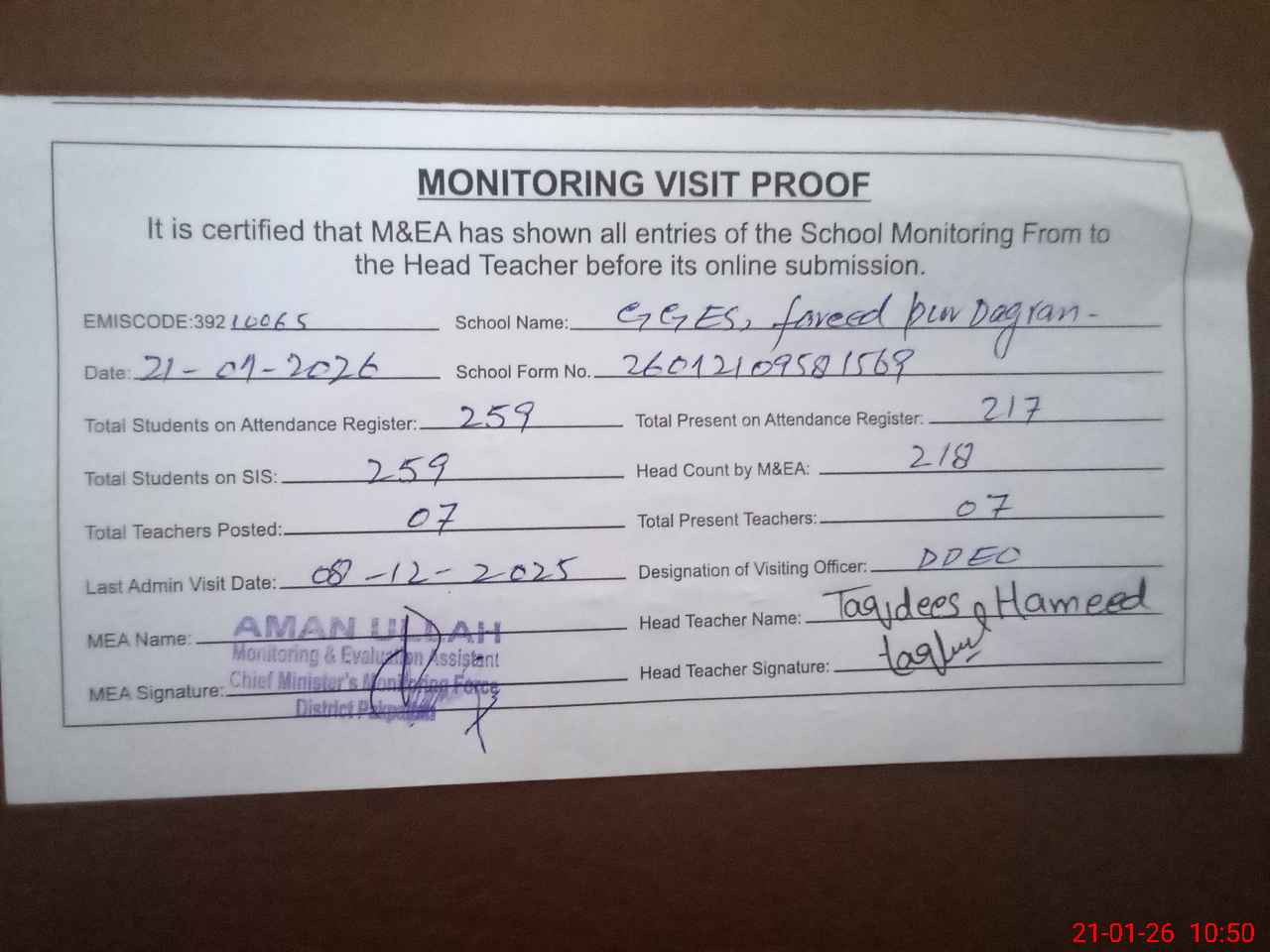 | EMIS Code: 39210065 | Name of School: GGES FARID PUR DOGRAN | |||