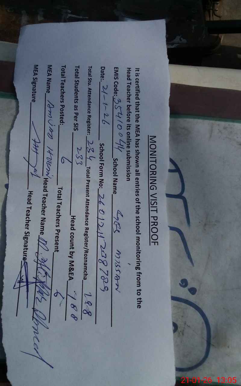| Attendance Register | Head Teacher | MEA with School | Visit Proof |