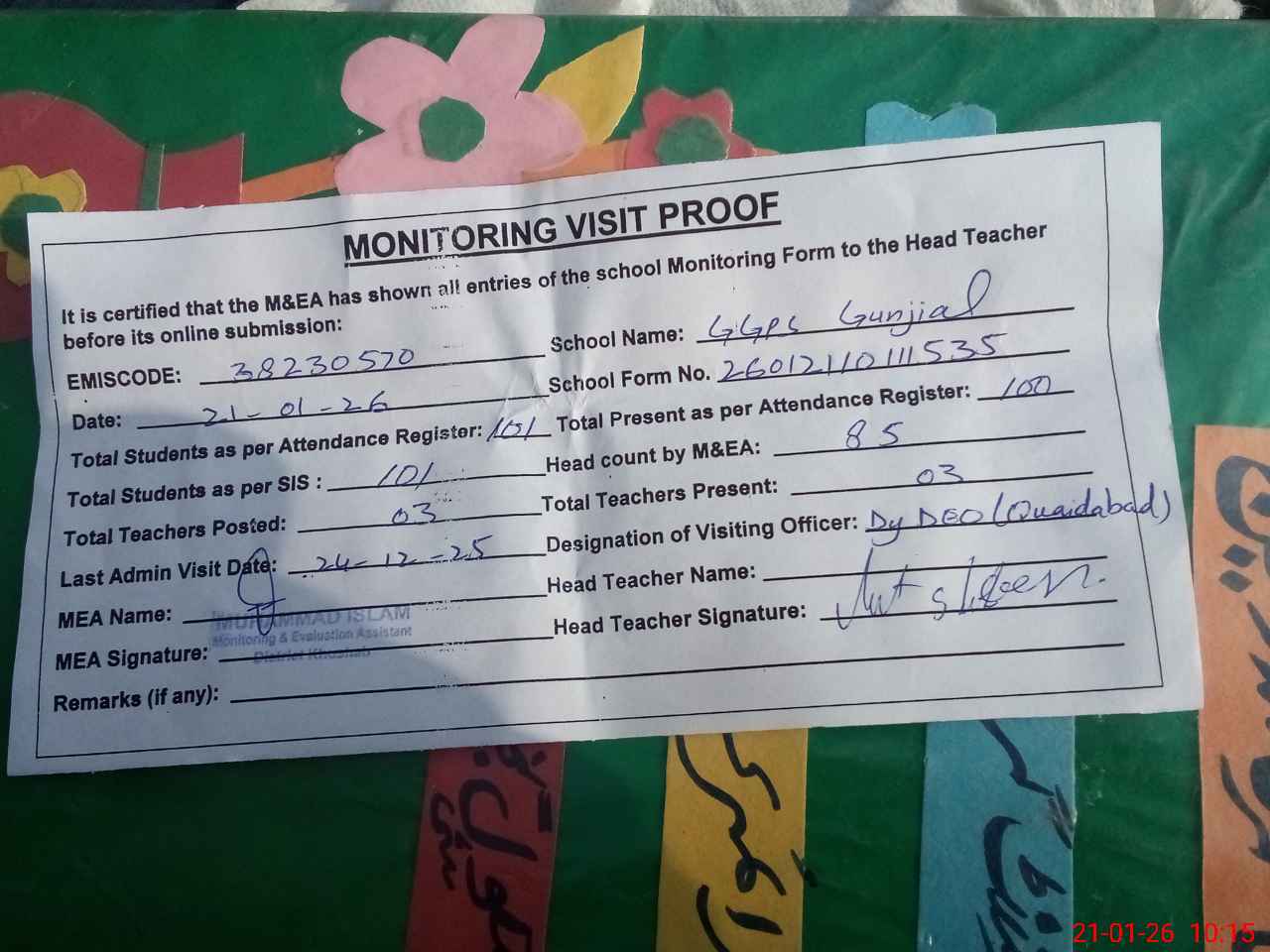 | EMIS Code: 38230570 | Name of School: GGPS GUNJIAL | |||
