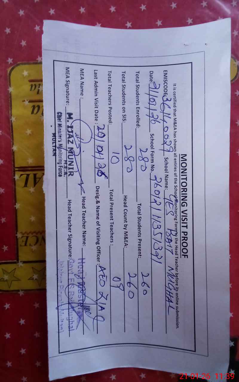 | EMIS Code: 36140029 | Name of School: GES BAIT MUGHAL BASTI DE-WALA | |||