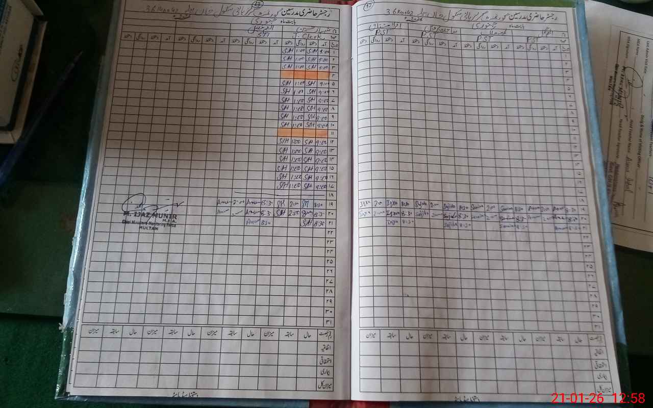 | CNIC | Full Name | Designation | R/C | Absence During Last Calender Month |