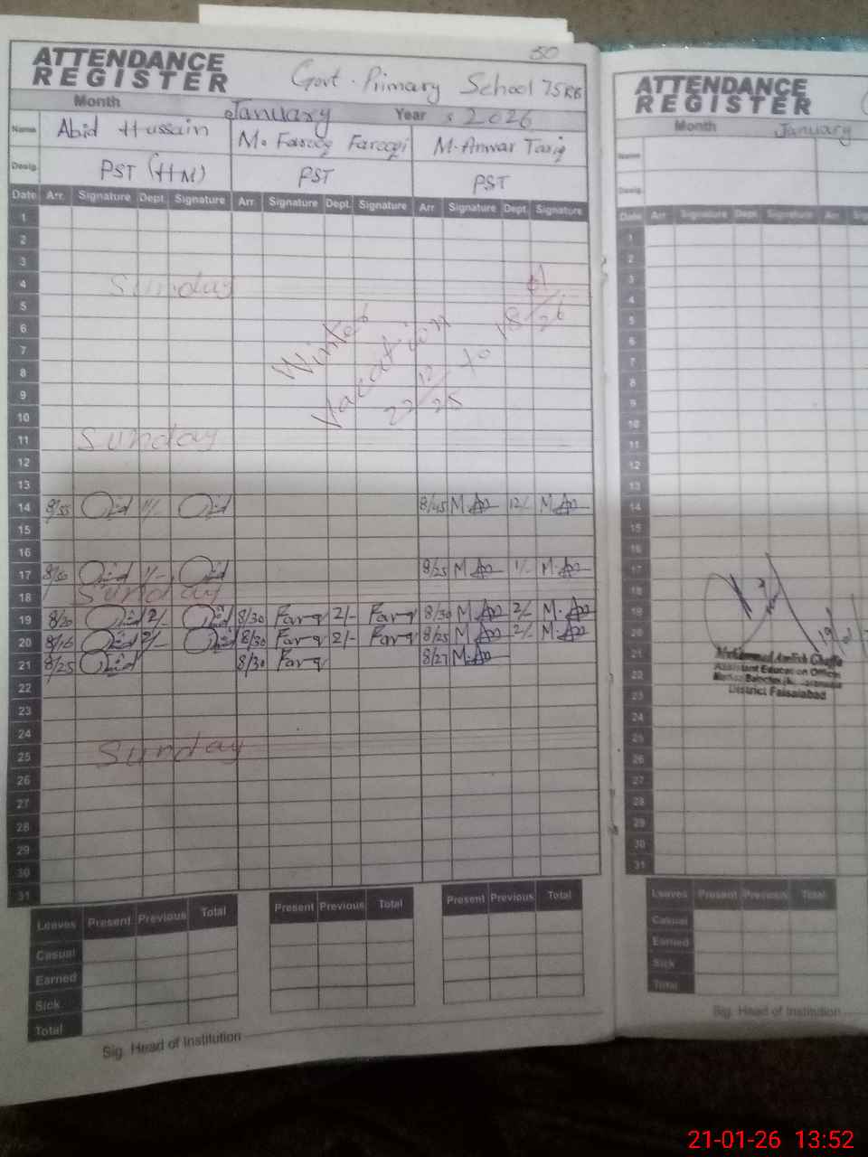 | Name: Ab**** Hu**** Designation: (School Headmaster's/Headmistress's) PST Phone/Cell Number: 03**** |