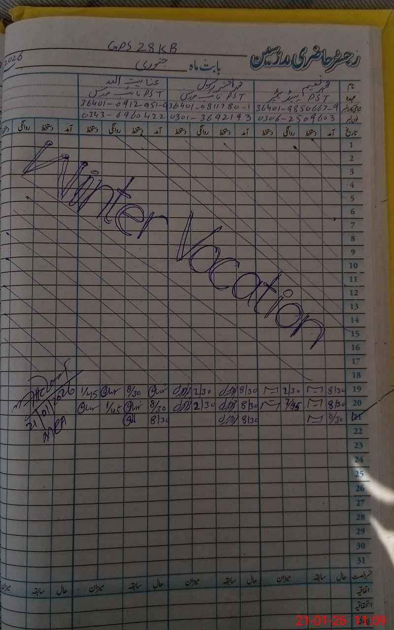| Name: MU**** NA**** Designation: (School Headmaster's/Headmistress's) PST Phone/Cell Number: 03**** |