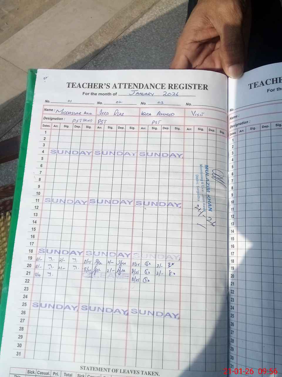 | Name: MU**** AZ**** Designation: (School Headmaster's/Headmistress's) PST Phone/Cell Number: 03**** |