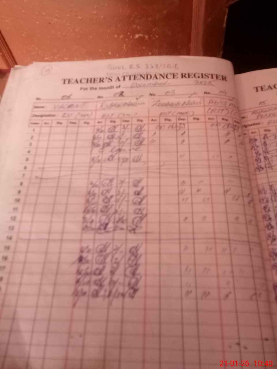 | 36**** | Sa**** | CIV | 0 | 0 | 0 | 0 | 0 | 0 | 0 | 0 | 0 | Absent (Un-Authorized) | |