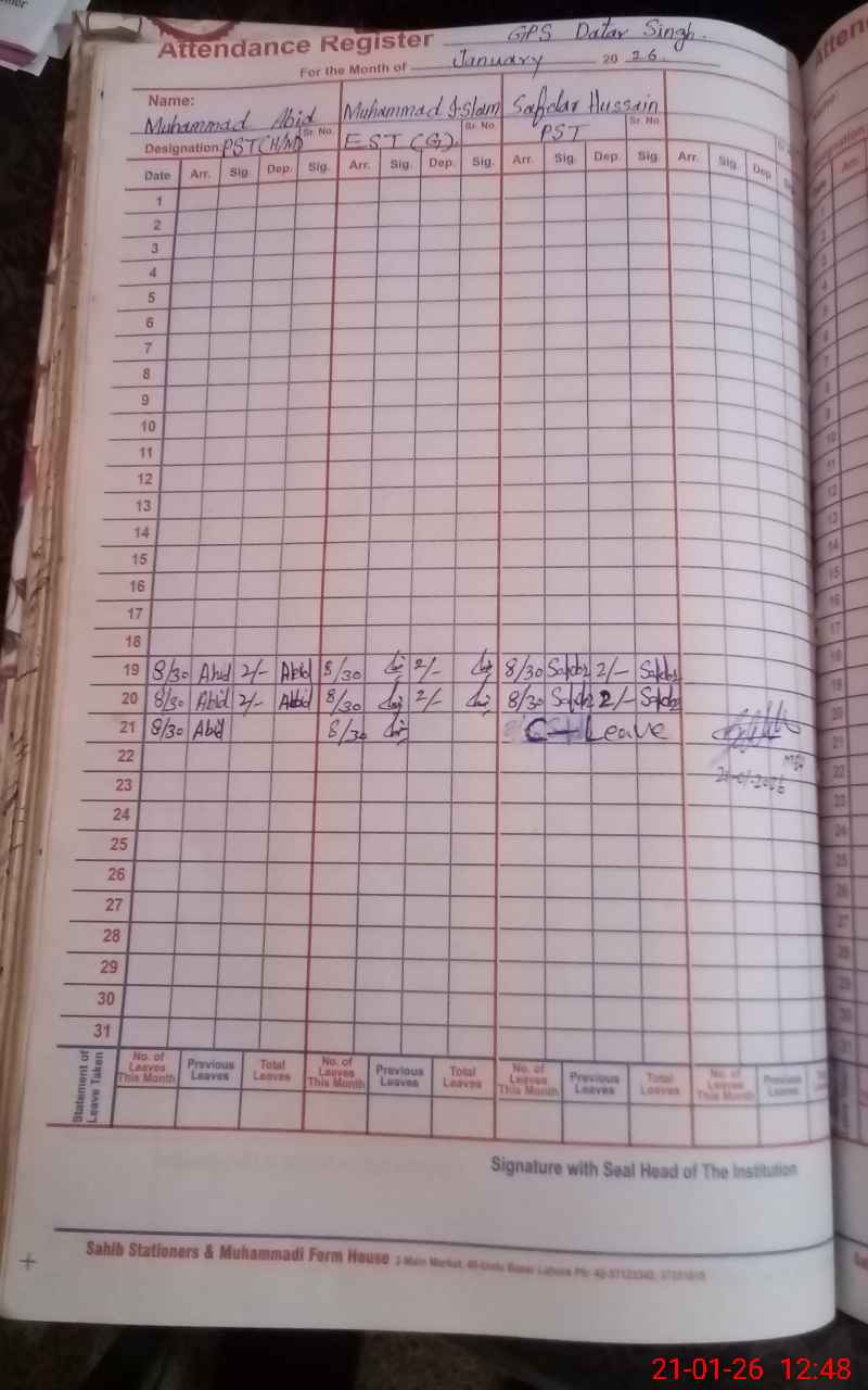 | 36**** | Sa**** Hu**** | PST Arts | Regular | 0 | 0 | 0 | 0 | 0 | 0 | 0 | 0 | 0 | Casual |