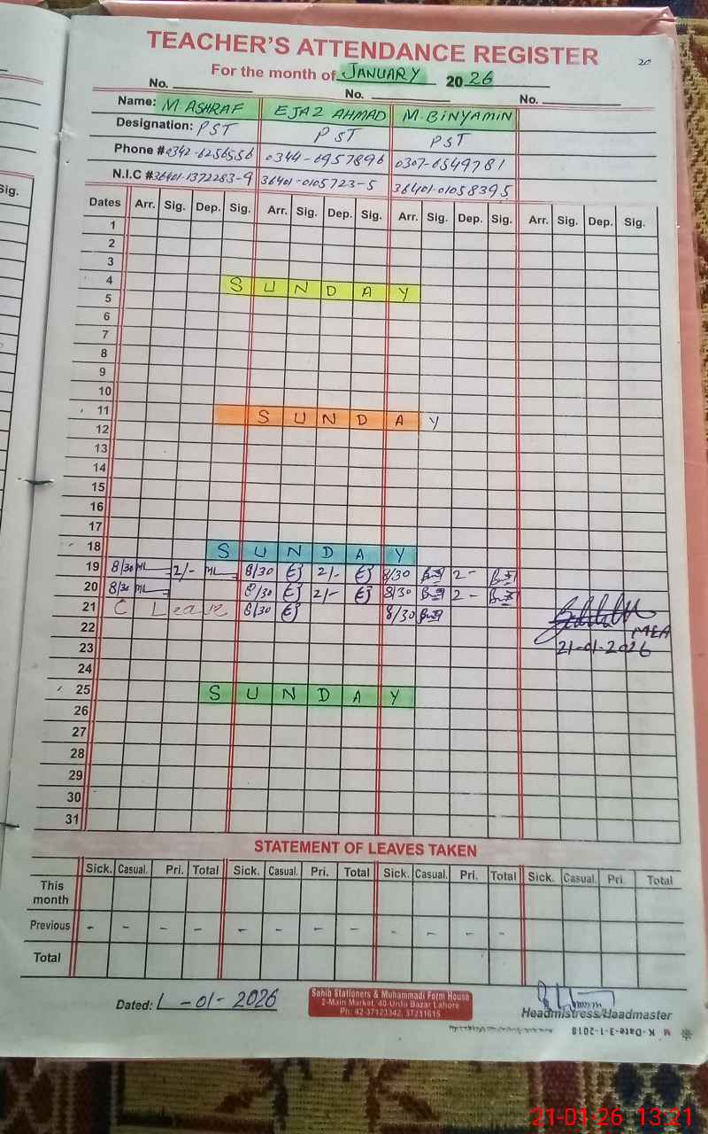 | Name: MU**** AS**** Designation: (School Headmaster's/Headmistress's) PST Phone/Cell Number: 03**** |